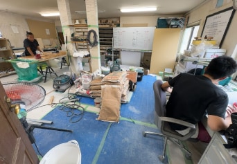 - 道具と材料が混在する空間に、改善の余地あり。ここから“整理整頓”が始まった。