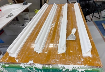 - 折れてしまったモールディング部材。悔しさを糧に、何度も型を取り直して修正を重ねた。