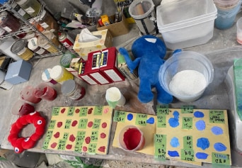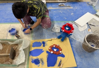 - 「こんなのどうだろう?」ミャクミャクのぬいぐるみから始まった自由課題。