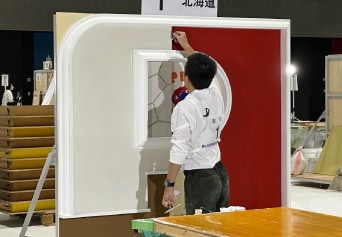 技能五輪の課題には毎回「自由課題」と呼ばれる、時間内に自由にデザインして壁を仕上げる場所がある。