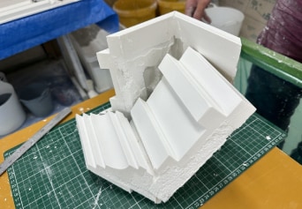- 折れてしまったモールディング部材。悔しさを糧に、何度も型を取り直して修正を重ねた。