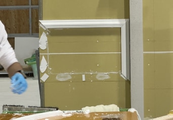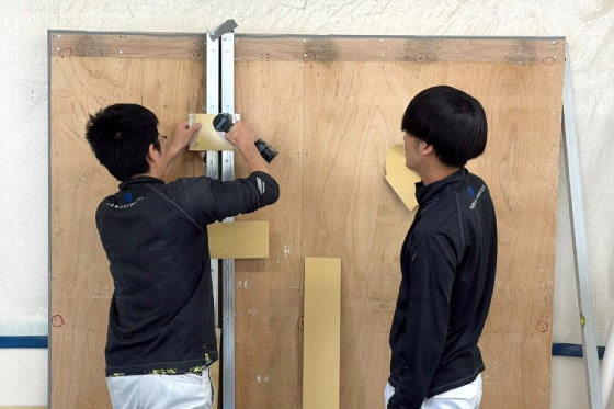 - 実物の壁を使ったトレーニング開始。現場を想定した実践で一歩ずつ前へ。