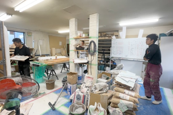 選手の池田は左官道場で図面を細かく理解します。こうしておよそ3ヶ月の訓練がスタート。