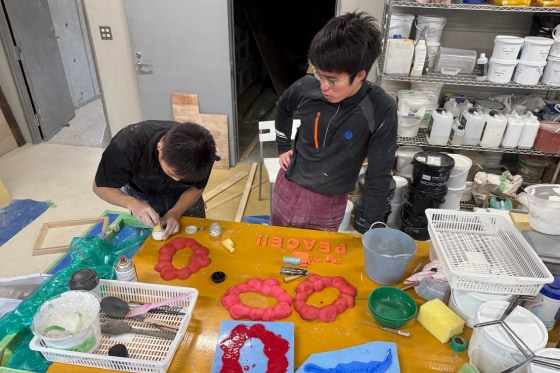 - 「こんなのどうだろう?」ミャクミャクのぬいぐるみから始まった自由課題。